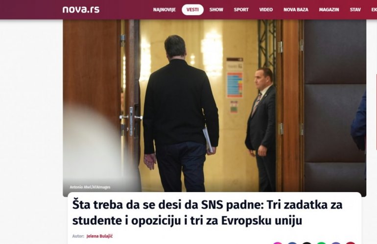 Наиме, у блокадерском медију "Нова С" освануо је наслов "Шта треба да се деси да СНС падне: Три задатка за студенте и опозицију и три за Европску унију", који је састављен на основу одговора присталица блокадера.
