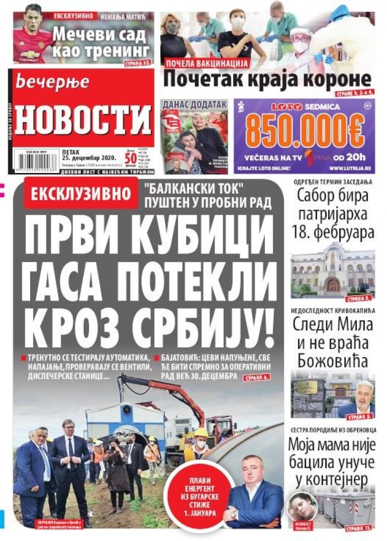 Све о почетку рада Балканског тока, његовим карактеристикама и могућностима, прочитајте у штампаном издању “Вечерњих новости” у петак 25. децембра