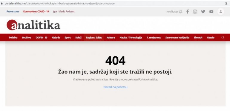 Sadržaj je izbrisan i sa Facebook stranice portala Analitika.