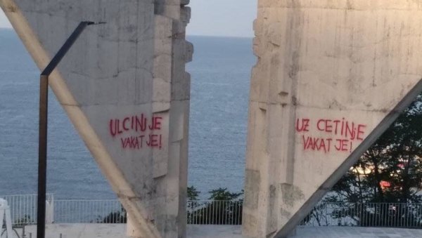 Nepoznati huligani oskrnavili su spomenik u Ulcinju natpisom „Ulcinj je uz Cetinje, vakat je, vakat je“!.