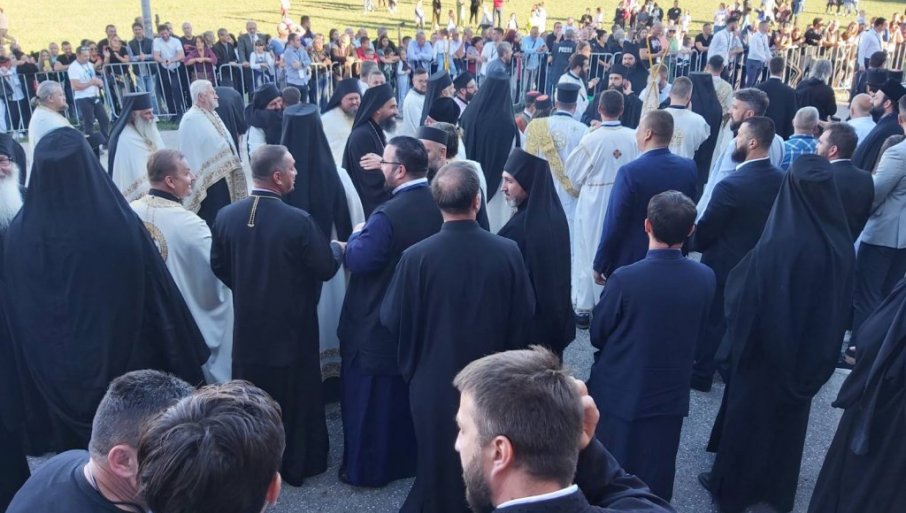 Patrijarh Porfirije i Mitropolit Joanikije odlaze iz manastira Đurđevi Stupovi. Završena je manifestacija za danas, a narod se polako razilazi.