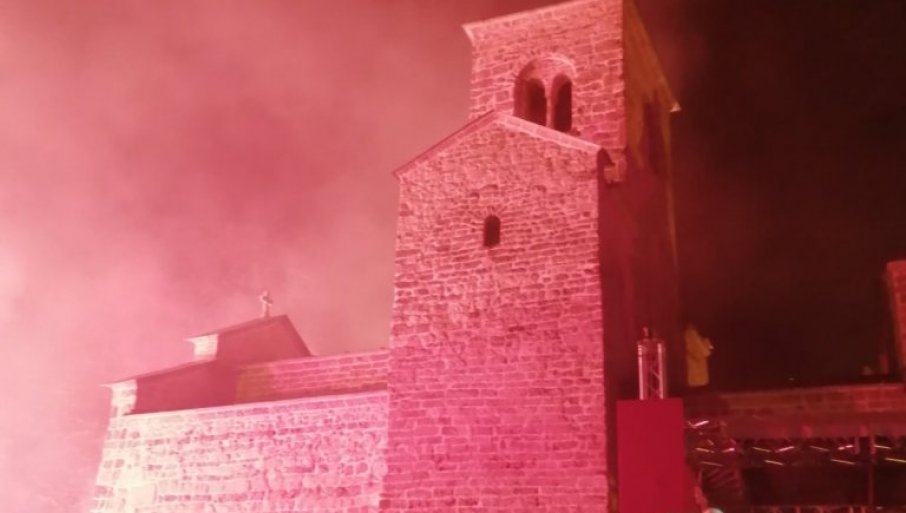Posle večernje službe i besede patrijarha Porfirija usledio je kulturno - umetnički program ispred manastira Đurđevi Stupovi.
