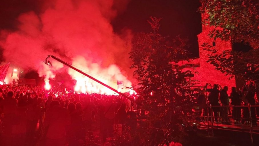 VELIČANSTVENE SCENE U BERANAMA: Srpski rod se veseli - vijore se trobojke, baklje osvetlele nebo iznad grada (FOTO)