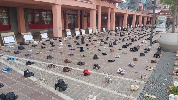GRUPA građana ostavila je ispred prostorija Ministarstva zdravlja u Podgorici 2.231 par obuće - cipele, papuče, sandale, čizme, koji prikazuju koliko je ljudi u Crnoj Gori umrlo od korone od početka pandemije.