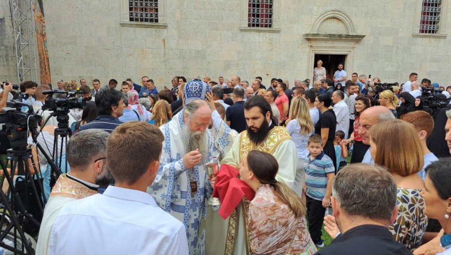 U LITURGIJSKOJ besedi mitropolit crnogorsko primorski Joanikije povodom praznika Uspenja Presvete Bogorodice i slave hrama na Savini zablagodario patrijarhu srpskom Porfiriju na dolasku u Crnu Goru i Herceg Novi.