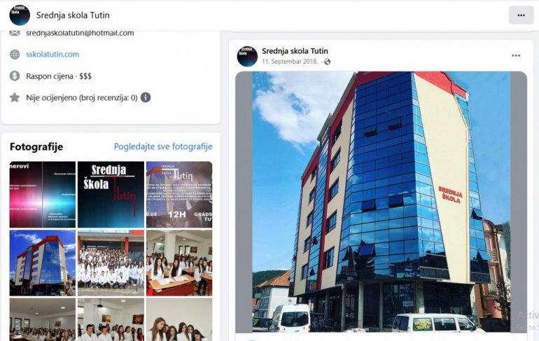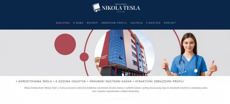 Foto:Printskrin naslovne strane Srednje škole Nikola Tesla Tutin
