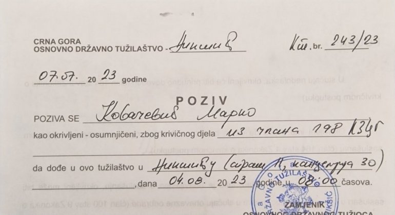 - Nekada je ovakve poruke slao Duško Marković a sada ih šalje tužilaštvo. Osvežilo je - naveo je Kovačević, objavljujući poziv tužilaštva, koje je podnelo krivičnu prijavu protiv njega zbog sumnje da je povredio ugled Crne Gore.