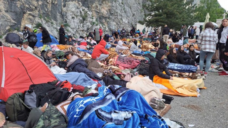 Plato ispred manastira je preplavljen šatorima, vrećama za spavanje i ćebadima onih koji su peške, autobusima ili automobilima došli juče kako bi prisustvovali večernjoj službi.