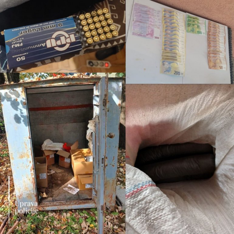 - Kod S.R. (54) pronađeni su pištolj "CZ" i revolver "Smith & Wesson", kao i 111 komada municije. Oduzet mu je i startni pištolj sa 31 komadom municije. Pretresom stana i drugih prostorija koje koristi M.B. (39) pronađena su dva veća pvc pakovanja sa sadržajem biljne materije zelene boje za koju se sumnja da je marihuana ukupne težine oko dva kilograma. Nadalje, pretresom prostorija na dve lokacije koje koristi policijski službenik P.M. (45) pronađena su 32 komada municije kao i puška M48 – karabin.