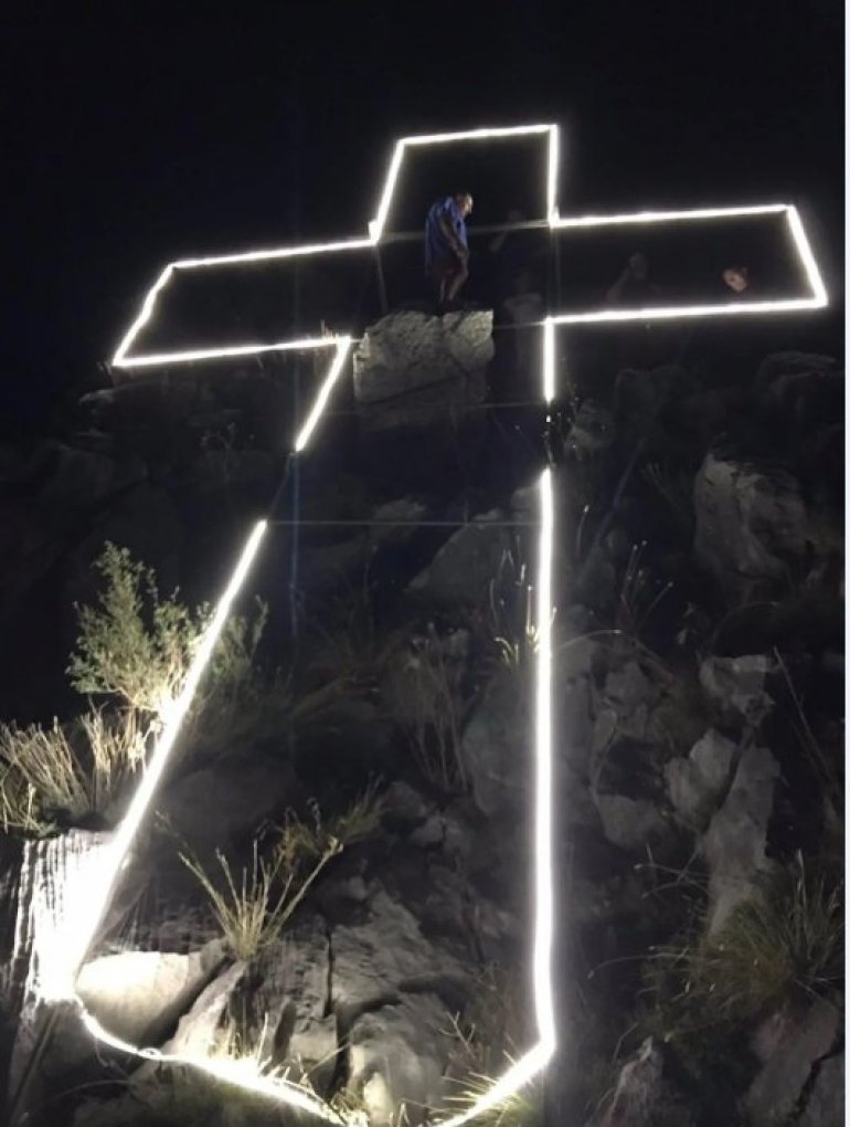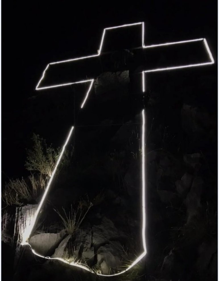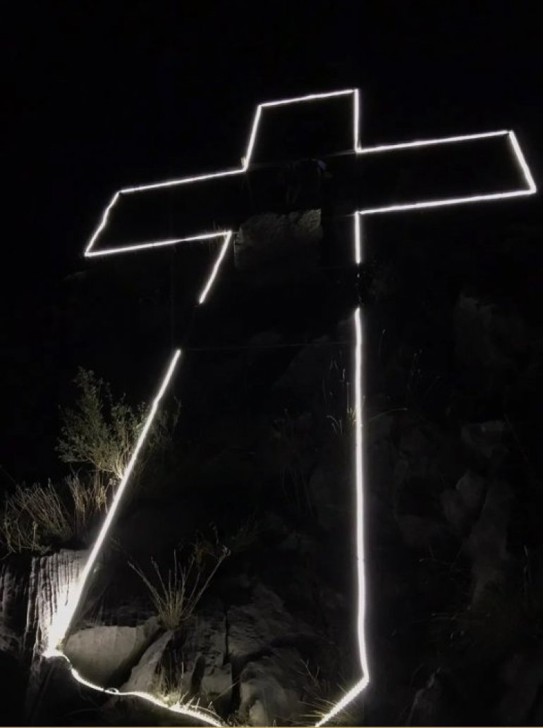Krst je visok 12 metara, napravljen je od metalne konstrukcije, a osvetljava ga led rasveta.
