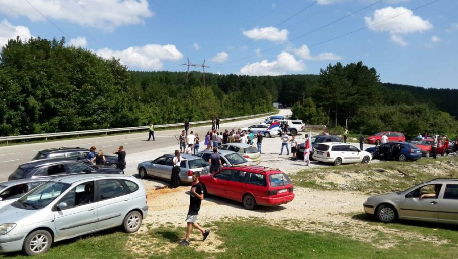 Građani se trenutno okupljaju ispred policijske blokade, kako bi pešaka krenuli ka graničnom prelazu Ranče.