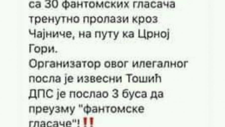 Prema objavama na Fejzbuku tri autobusa sa fantomskim biračima iz Sarajeva danas su se kretala prema Pljevljima. Prema istom izvoru jedan autobus je vraćen iz Čajniča.