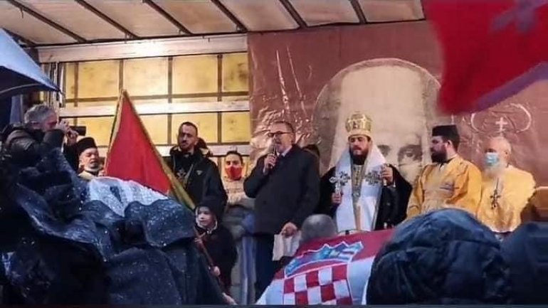 NASTAVLJEN PERFORMANS NA CETINJU: Sledbenici raspopa Miraša Dedića slavili Badnji dan sa zastavama Hrvatske i SAD (FOTO)