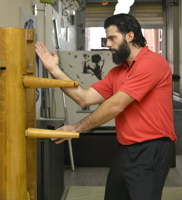 Drveni delovi su njegove ruke, srednji krak, koji je ispod ruku, podrazumeva udarac nožne tehnike, tu se rade blokovi, a donji krak manifestuje nogu. Ideja je da vašim balansom i stabilnošću udarite lutku što većom snagom i destabilišete je. Dobra je za razvijanje snage, eksplozivnosti, strukture, konstantno držanje balansa, kao i za rotacije u neutralnoj liniji oko svoje.