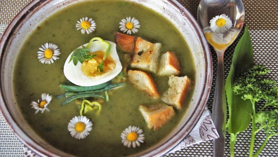 Večera: potaž od koprive sa jogurtom i semenkama suncokreta, kriška integralnog dvopeka