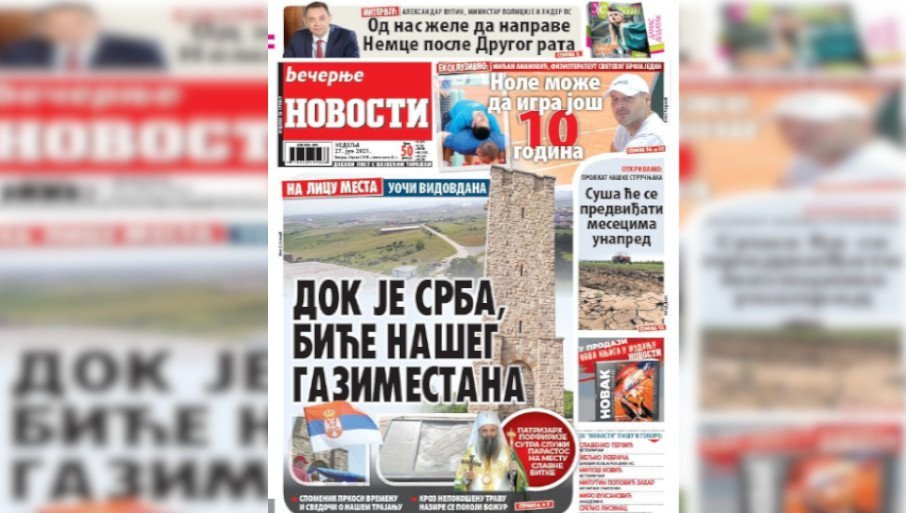 NEDELJNE "VEČERNJE NOVOSTI" SUTRA DONOSE: Gazimestan uoči Vidovdana, Rebrača o Obradovićevom povratku, porazna najava popisa Srba u Hrvatskoj