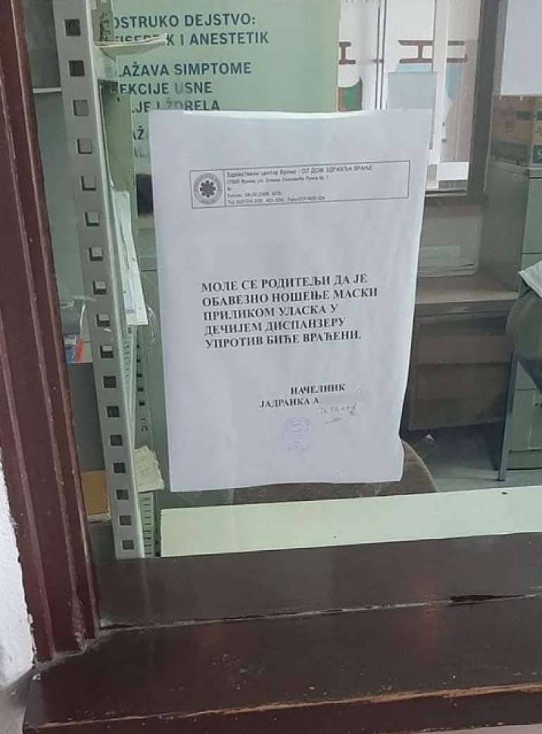 HIT NATPIS U DOMU ZDRAVLJA U VRANJU: Mole se roditelji...šta? (FOTO)
