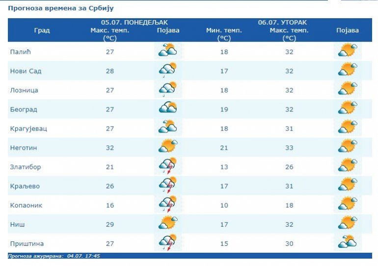 VREMENSKA PROGNOZA ZA PONEDELJAK, 5. JUL: Pogledajte kakvo nas vreme očekuje danas