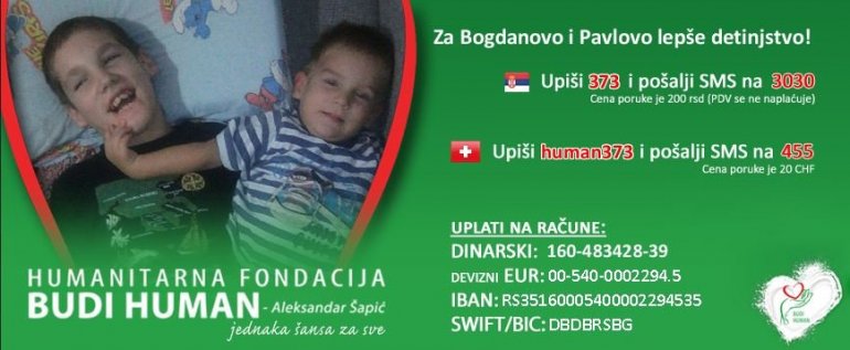 Za Bogdanovo i Pavlovo lepše detinjstvo! Budimo humani!