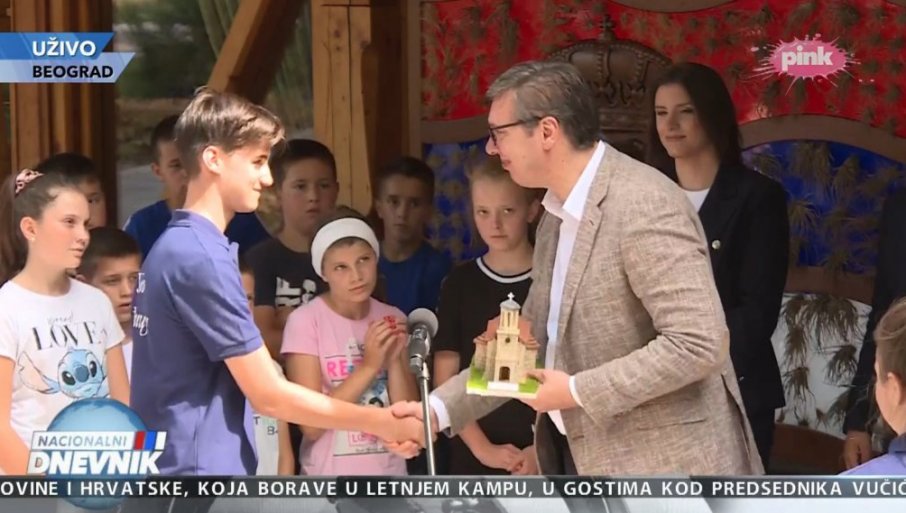 PREDSEDNIK Srbije Aleksandar Vučić ugostio je srpsku decu iz Federacije Bosne i Hercegovine i Hrvatske koja u sklopu letnjeg kampa za srpsku decu iz regiona borave u Srbiji.