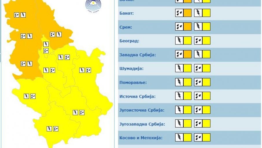 Na području Srbije još danas lokalna pojava jačih pljuskova sa grmljavinom (uz količinu padavina veću od 20 mm za 3 h) sa tendencijom postepene stabilizacije vremena posle podne i uveče.