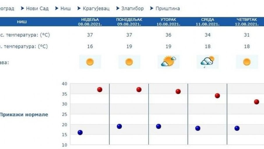 Tokom nardne sedmice u većini gradova najviše temperature biće do 37 , a najniže od 15 do 17 stepeni.