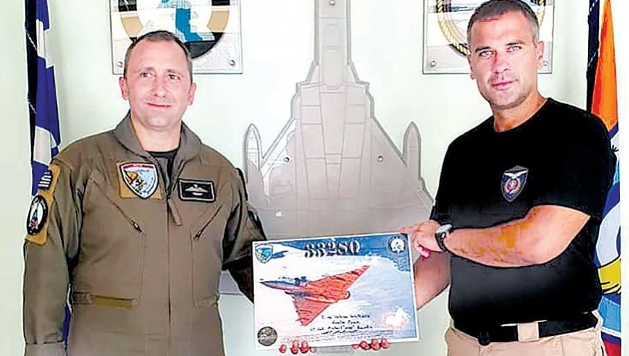 U znak zahvalnosti, plakete su im u subotu u grčkoj vojnoj bazi Tanagra uručili general major Hristos Lambris i komandant eskadrona pukovnik Mihail Koirtis.