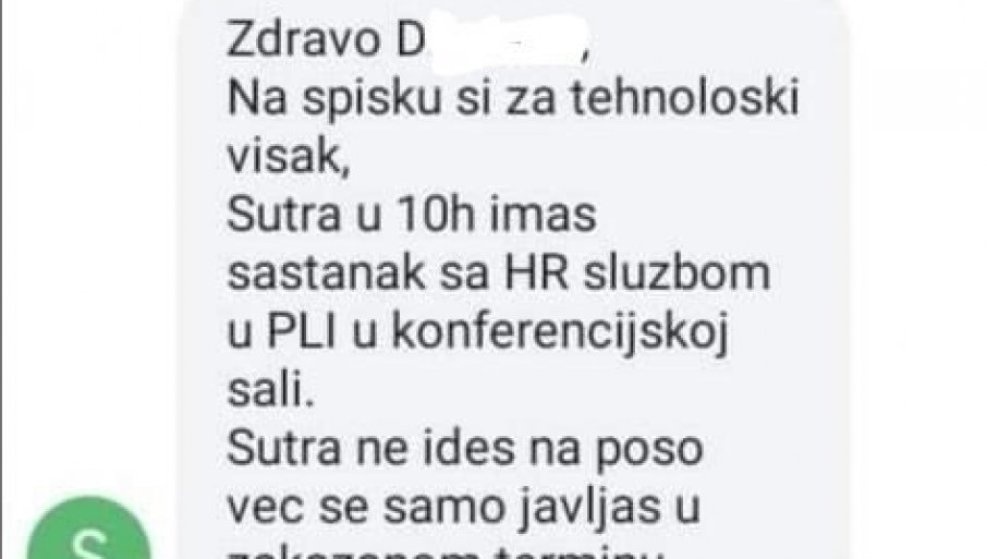 KRAJEM prošle nedelje 90 od 1.500 radnica austrijske kompanije "Gramer", koja se bavi šivenjem auto-sedišta, dobilo je obaveštenje SMS porukom da su "na spisku za tehnološki višak" i da više ne dolaze na posao nego da se jave kadrovskoj službi.