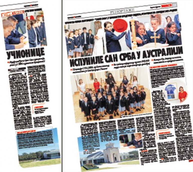 Trudom Srba na Petom kontinentu otvorena je jedinstvena školska ustanova van granica Srbije u kojoj će, kako su "Novosti" već pisale, novi naraštaji pravoslavnih naroda i svi koji budu želeli moći da uče srpski jezik.