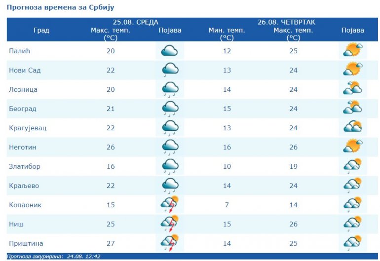 VREMENSKA PROGNOZA ZA SREDU 25. AVGUST: U većem delu Srbije kiša i oblaci, a pogledajte kakvo nas vreme očekuje do 1. septembra