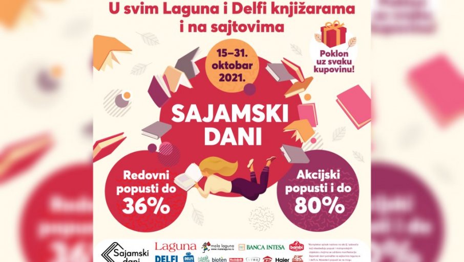 LAGUNA i Delfi knjižare četvrtu godinu zaredom organizuju Sajamske dane od 15. do 31. oktobra 2021. u svim Delfi i Laguninim knjižarama, kao i na sajtovima laguna.rs i delfi.rs.