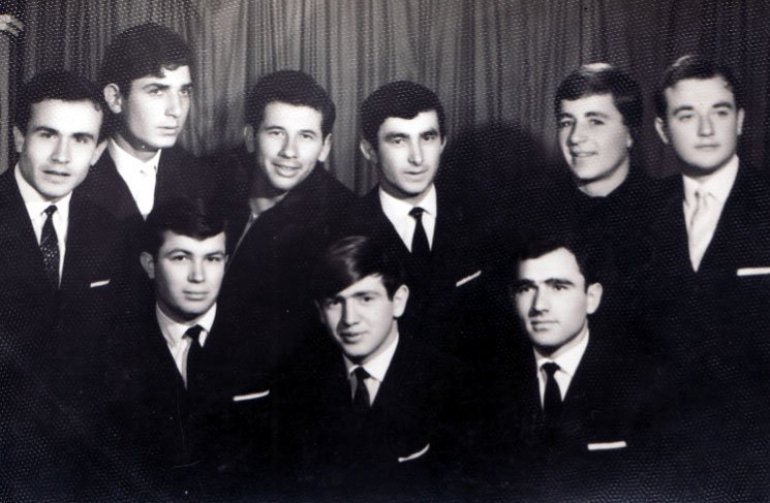 GENERACIJA 1962. Stoje: Jovo Mrđa, Čedo Grabež, Tomo Manojlovski, Franjo Skoko, Mehmed Elez, Ratomir Cvetković; sede: Vidoje Vukojević, Petar Paroški, Slavko Krunić, Foto Privatna arhiva