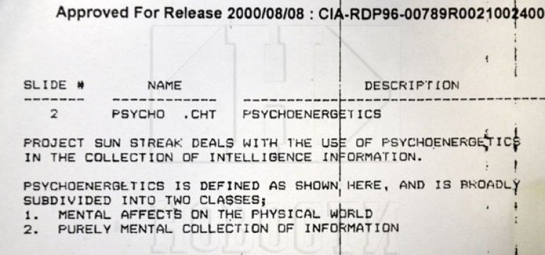 Do sličnog zaključka je došao 1995. i vrh CIA koji je priznao da "daljinsko viđenje" nije dokazano i da parapsihološki špijuni nisu bili korisni u obaveštajnim operacijama.