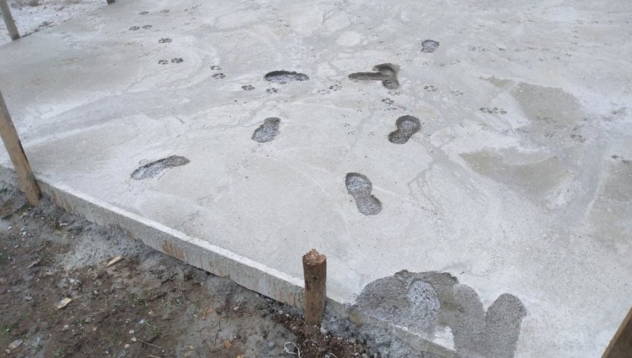 Međutim, neko je, očigledno namerno jer je postolje u potpunosti vidljivo, napravio nekoliko koraka po svežem cementu.