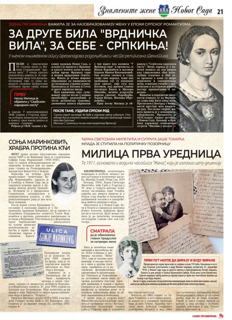 ZNAMENITE ŽENE NOVOG SADA: U nedelju u "Večernjim novostima" specijalni dodatak