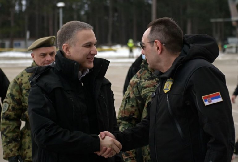 POTPREDSEDNIK Vlade i ministar odbrane dr Nebojša Stefanović, zajedno sa ministrom unutrašnjih poslova Aleksandrom Vulinom i načelnikom Generalštaba Vojske Srbije generalom Milanom Mojsilovićem, održao je danas sastanak u kasarni "Toplički ustanak" u Kuršumliji čija je tema situacija u Kopnenoj zoni bezbednosti.