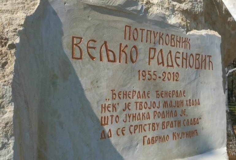 Prvo obeležje slavnom Đeneralu nalazi se na stotinak metara od porodične kuće Radenovićevih potomaka. Neustrašivi Veljko, najzaslužniji za spasavanje desetina civila od OVK terorista, pre decenije sahranjen je bez dostojnih državnih počasti.