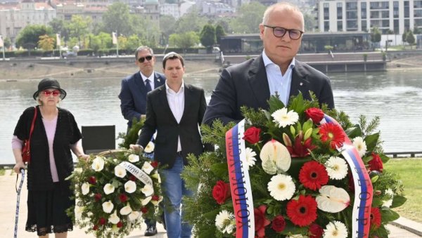 ZAMENIK gradonačelnika Goran Vesić je povodom Dana sećanja na žrtve Holokausta u Beogradu položio venac na Spomenik žrtvama genocida u Drugom svetskom ratu na Starom sajmištu.