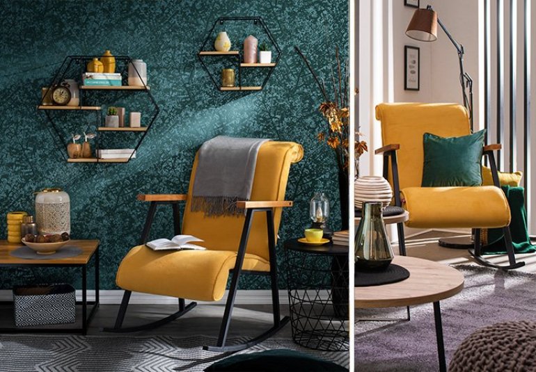 Ukoliko se odlučite za jarko žutu boju, ne preporučuje se da ona bude izbor za uređenje cele sobe. Ambijenti sa tamnijom bojom zidova mogu biti ulepšani i osvetljeni jarko žutom akcent bojom, koja može biti u vidu stolice ili fotelje, poput stolice na ljuljanje YOKA. Jarko žutu možete uvesti i kroz žuto-zlatni dekor sobe, a intezivne boje zidova i šare tapeta su odlične za ukrašavanje žutim detaljima.