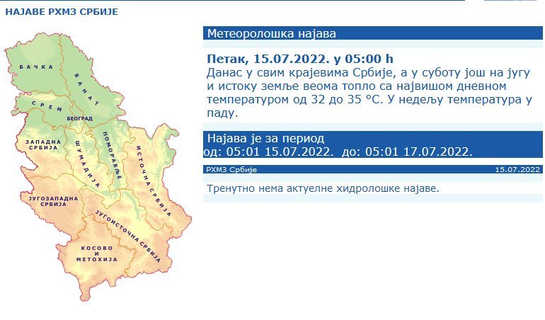 VREMENSKA PROGNOZA ZA 15. JUL: Vreo dan pred nama, za vikend koji stepen niže