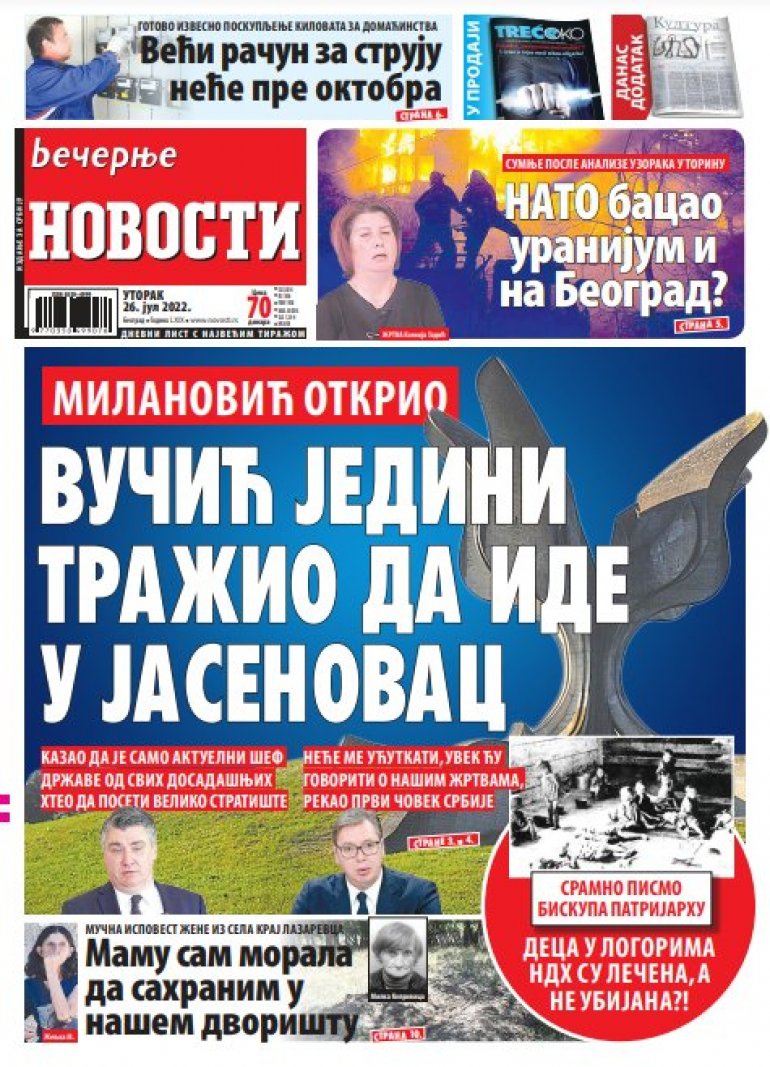 Kompletan tekst pročitajte u štampanom izdanju "Večernjih novosti" u utorak, 26. jula.