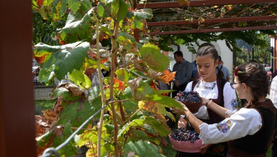 PRE dve godine je u porti crkve posvećene silasku Svetog duha počeo da rađa vinograd, od nakalemljene loze sa hilandarskog vinograda.