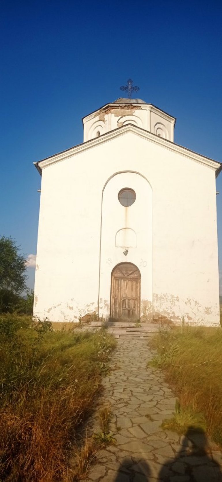 Crkva na brdu iznad grada sagrađena je, kažu, između 1929. i 1930. godine, dok se pored svetinje nalazi i gradsko groblje. Ispred crkve na prostranoj livadi, nalik parku, parkirano je nekoliko automobila, a pored samog ulaza u crkveno dvorište i policijski. Gvozdena kapijica kojom se ulazi u hram je zaključana, ali na molbu da uđemo u crkvu i pomolimo se, policajac otključava, baš kao i drvena stara vrata ove svetinje.