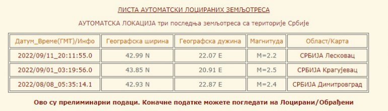 ZEMLjOTRES od 2,2 stepena po Rihteru zabeležen je večeras u Leskovcu.