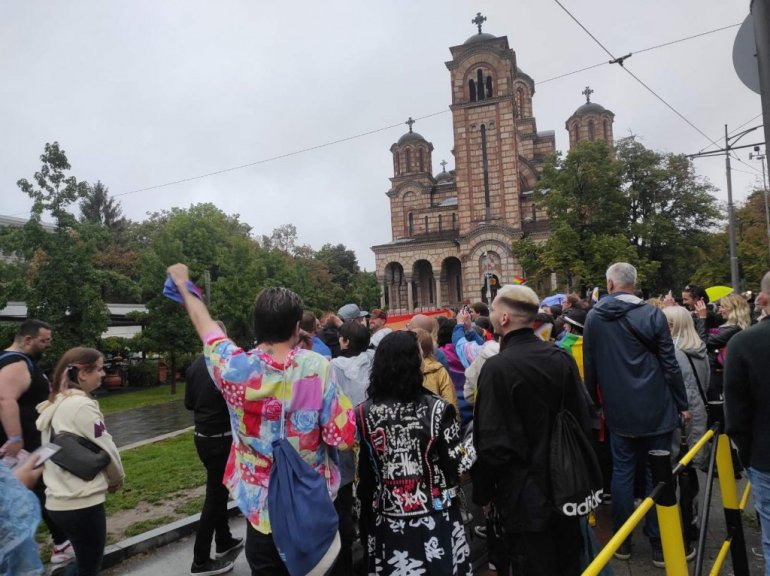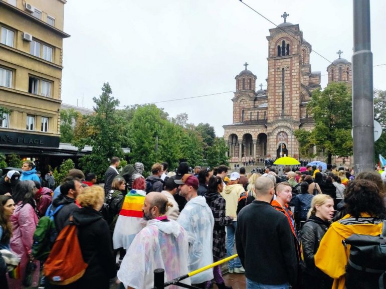 Kolona šetača na Europrajdu stigla je do Crkve Svetog Marka gde se nalaze protivnici ove šetenje.
