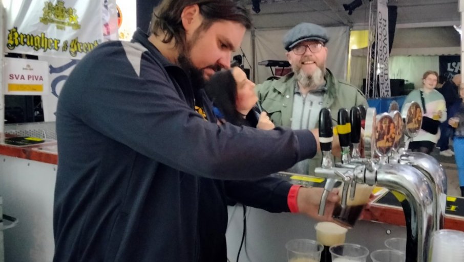 - Okrenuli smo četiri ture različitog piva i još ćemo toliko - kažu hrabri momci čiji sto krasi "brdo" naseckanih kobasica.