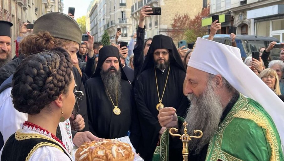 TRADICIONALNO, POGAČOM I SOLJU: Svečani doček za patrijarha Porfirija u Sabornoj crkvi Svetog Save u Parizu (FOTO)