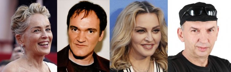 Šeron Stoun, Kventin Tarantino, Madona i Uroš Petrović, Foto AP/ Profimedia/privatna arhiva