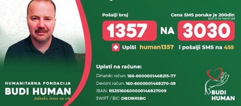 Bojanu se može pomoći uplatama na račune, dinarski: 160-000001468215-77, devizni: 160-6000001468270-09, IBAN RS35160600000146827009, kao i slanjem poruke 1357 na broj 3030.