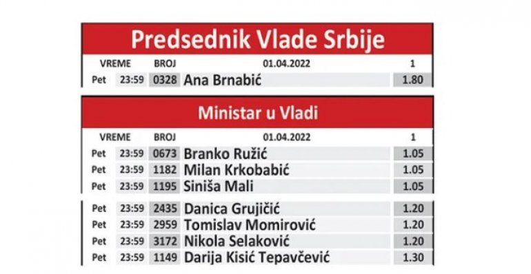 OPET bez greške - Kladionica Meridian pogodila sva poznata imena ministara!